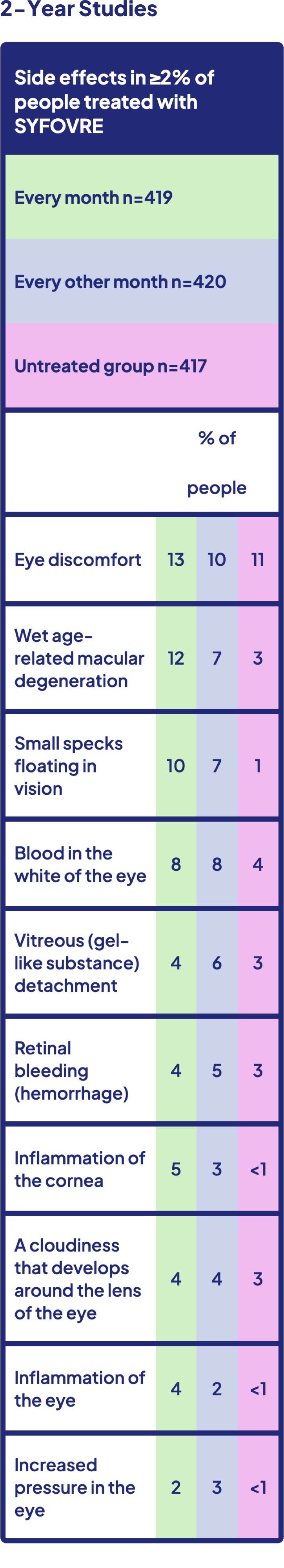 The safety of SYFOVRE was studied in 2 robust clinical trials in people living with Geographic Atrophy.